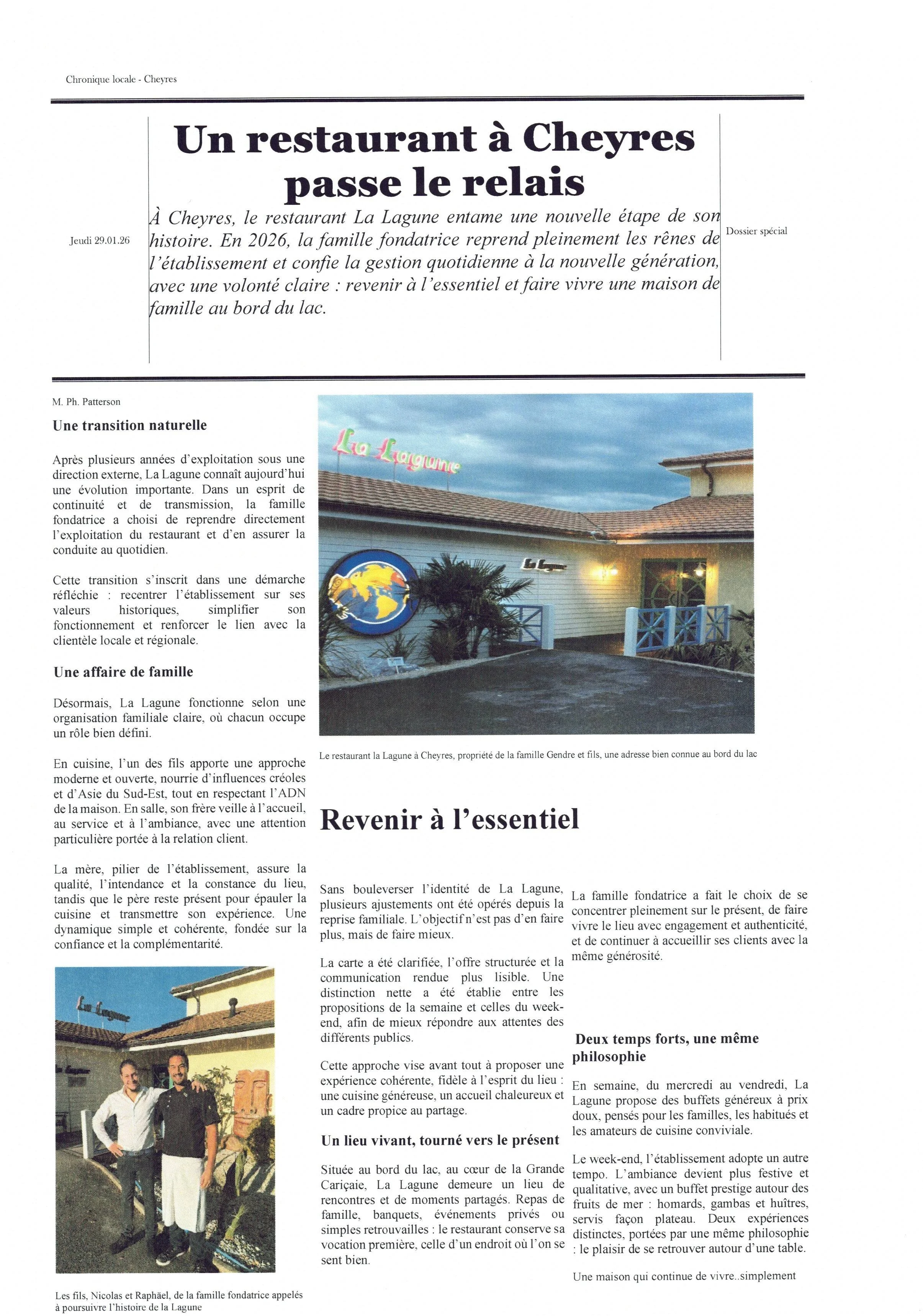 Les enfants reprennent le flambeau: l’un revient de pays lointains avec des inspirations exotiques, et l’autre fait revivre ce qui a toujours signé La Lagune.